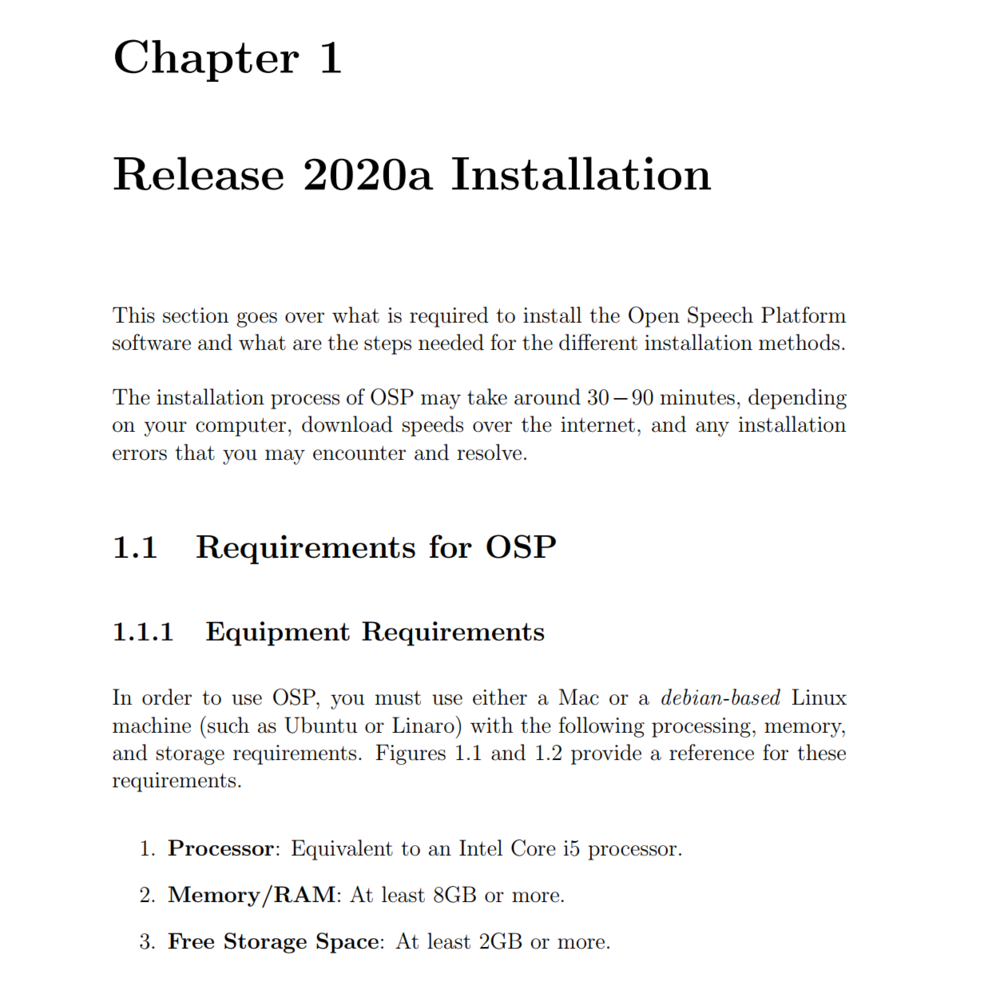 Initial documentation for installing the OSP software, spanned across two releases: 2019A and 2020A (PDF).