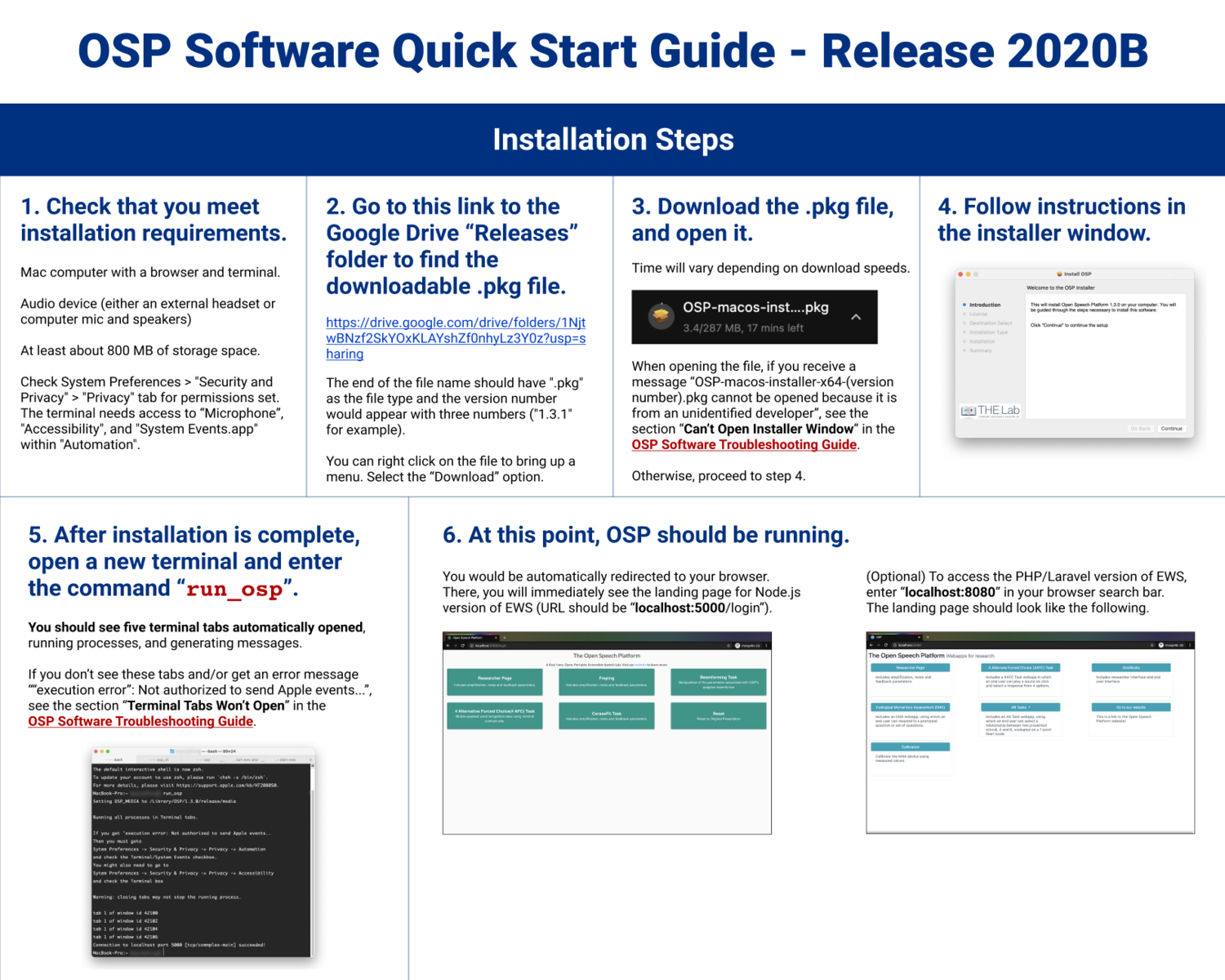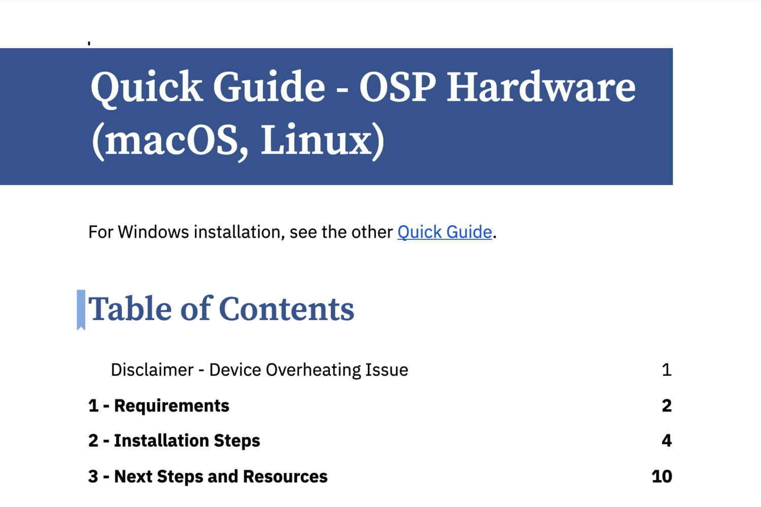 view PDFFinal draft of an OSP software guide for 2020B, made on Figma. view PDFFor release 2021A, incorporated installation steps and other explanation of the software and hardware setup into a series of Google Docs. The image preview shown is a document for setting up the OSP hardware. view PDF