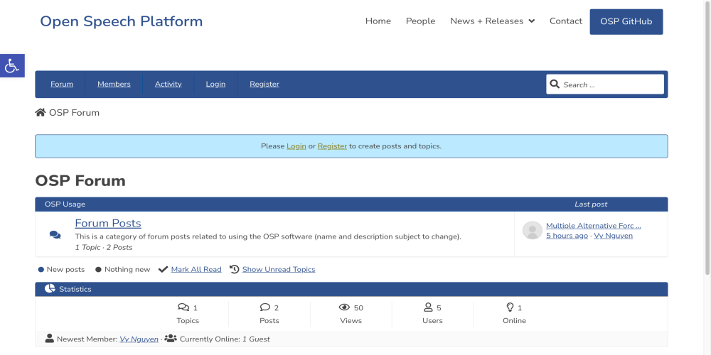 For the old OSP website and PI's request, created an online platform from a WordPress plugin from PI's request to enable visitors to find and communicate information related to OSP software & hardware documentation, changes, issues, and suggestions.